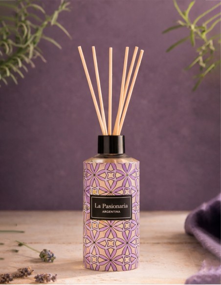 Difusor Sentidos de La Pasionaria | Difusor aromatizante de ambiente de 250 ml y 7 varillas de rattánLavanda