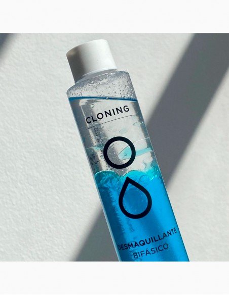 Desmaquillante Bifásico Cloning, combina las necesidades en la remoción del maquillaje Waterproof (a prueba de agua) y la remoción de impurezas hidrosolubles del rostro.