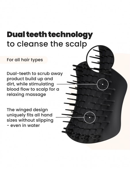 El exfoliante y masajeador para el cuero cabelludo está diseñado para ayudar a desintoxicarlo. Con dientes dobles, elimina la acumulación de producto, las células muertas y la suciedad, a la vez que estimula el flujo sanguíneo y proporciona un masaje relajante. Su diseño con alas se adapta a manos de todos los tamaños sin resbalarse, incluso en el agua.