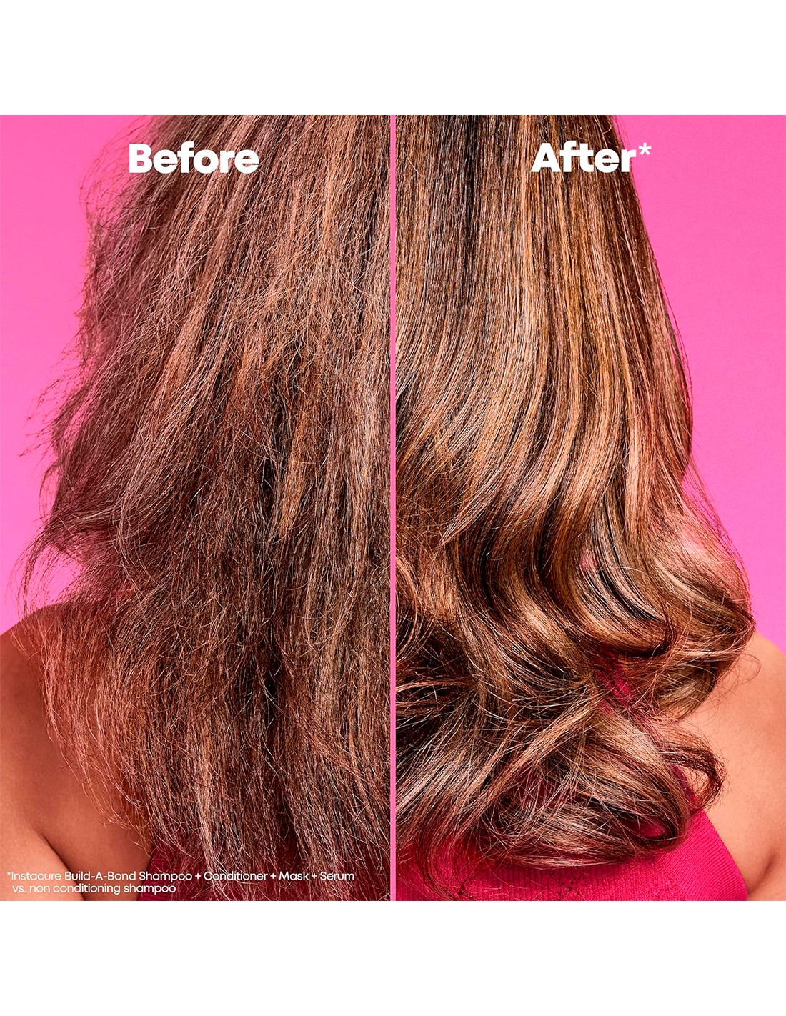 - Proporciona un cabello 8 veces más fuerte y 94% más suave* (*Sistema de champú, acondicionador, mascarilla y bálsamo Instacure Build-A-Bond vs champú sin acondicionador)