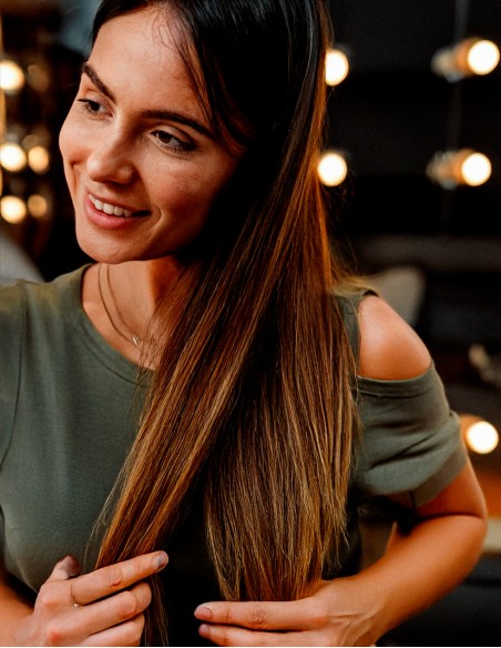 Su eficaz fórmula se activa con el calor de la planchita, protegiendo la fibra capilar, logrando un cabello brillante y sumamente sedoso.