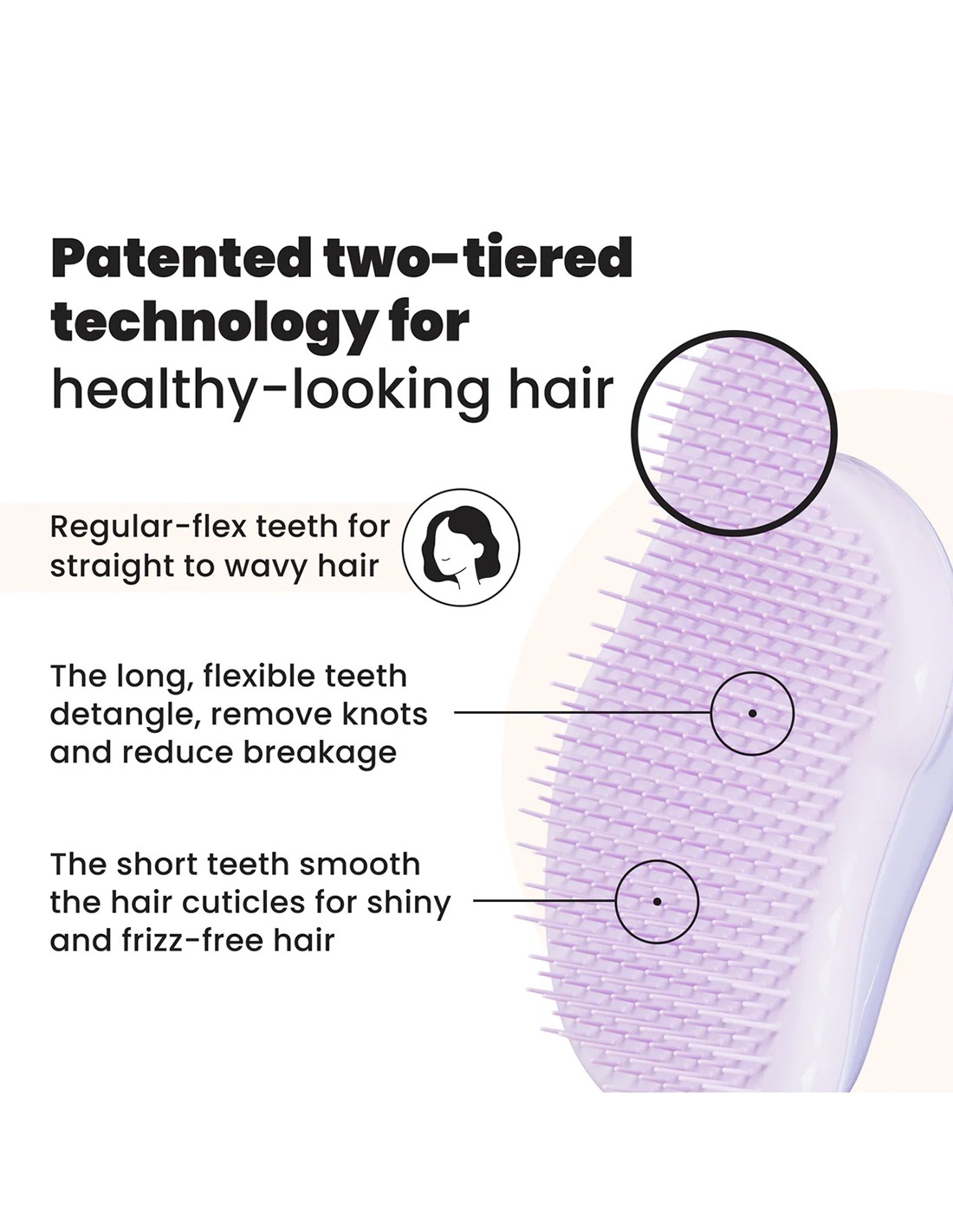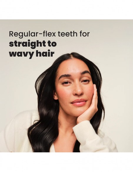 Ideal para cabellos lisos y ondulados, nuestra tecnología patentada de dientes de dos niveles es la estrella. Al deslizarse por el cabello húmedo y seco, los dientes largos desenredan, mientras que los cortos alisan la cutícula capilar. El resultado es un cabello suave y de aspecto más saludable, con mayor brillo y sin tirones.