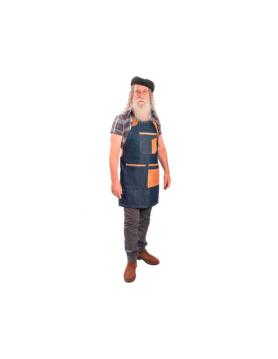 Delantales realizados en DENIM (100% algodón) y cuero vacuno, fuertes y resistentes.