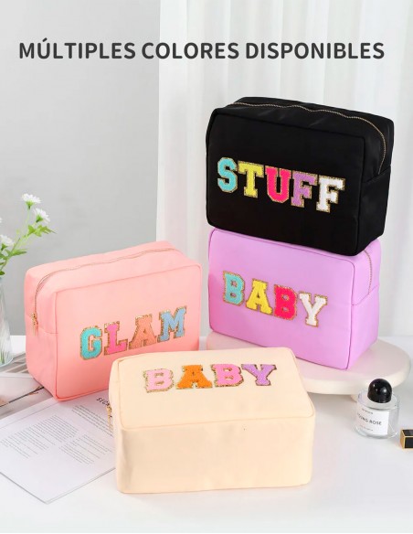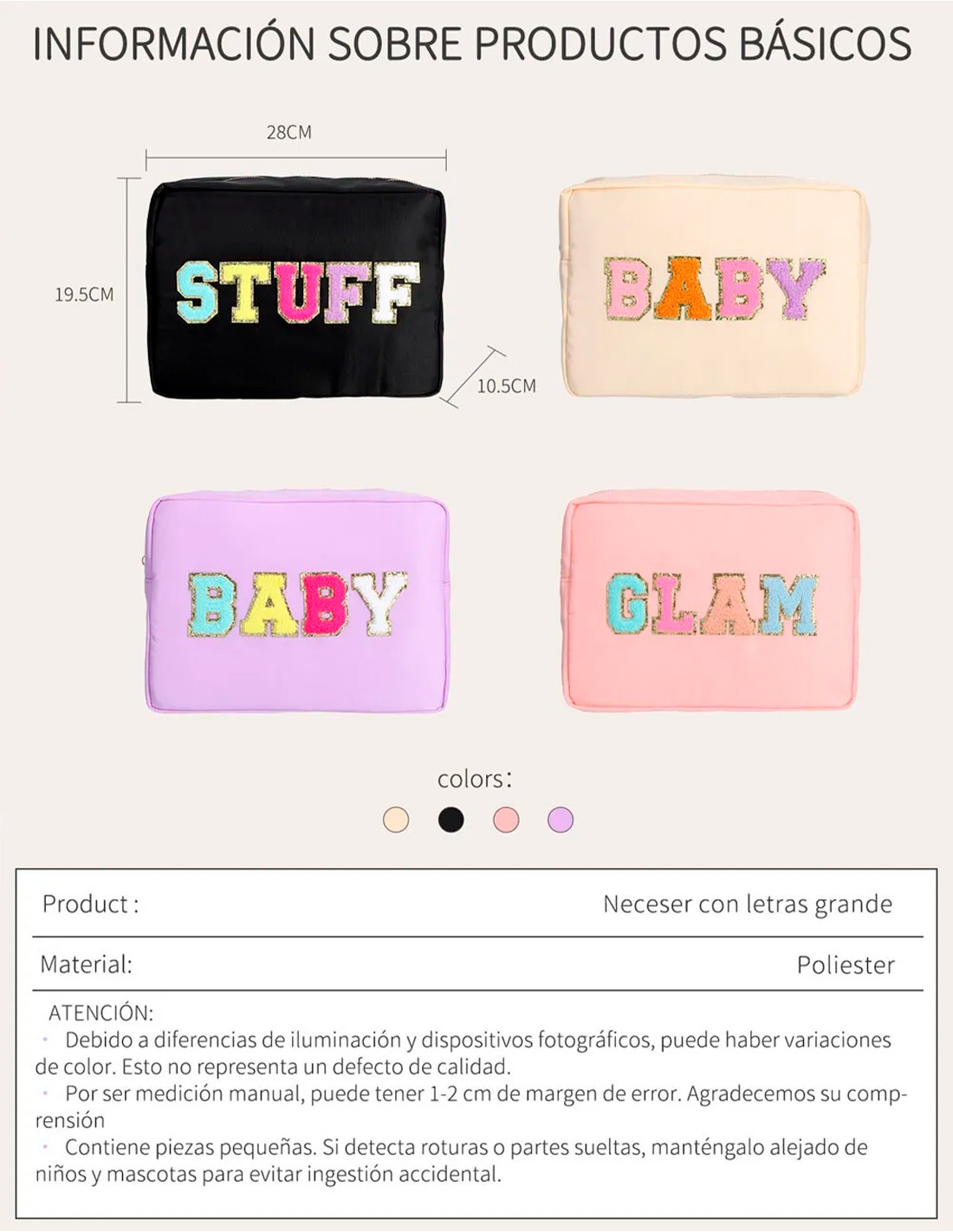 Este neceser estilo cartera combina diseño sofisticado con funcionalidad. Hecho de poliéster resistente con un estampado geométrico dorado sobre fondo negro, es perfecto pa2 viajes, maquilladoras o para quienes quieren tener todo organizado con estilo.