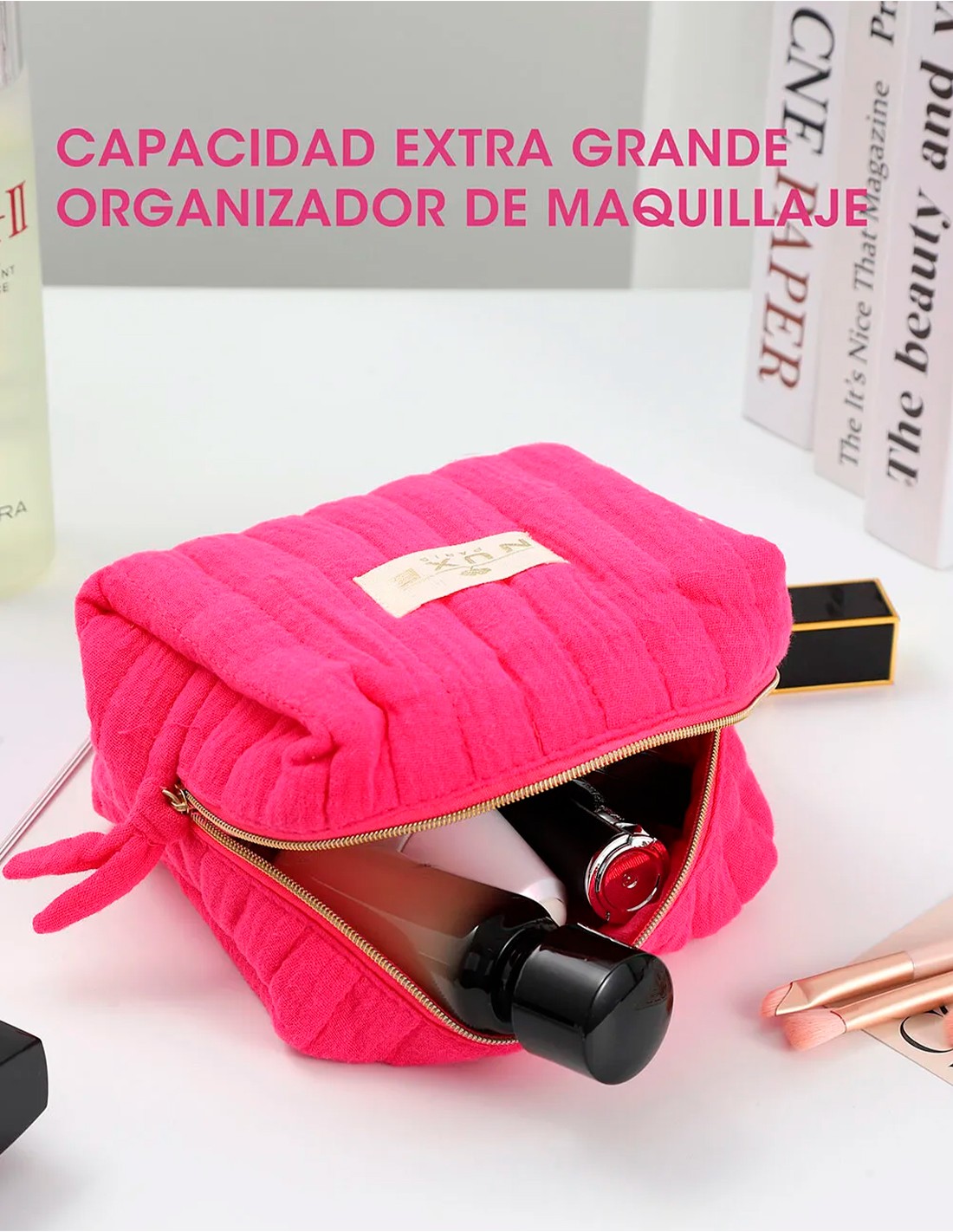 Con diseño moderno y elegante. Tamaño mediano, perfecto para organizar tus esenciales.