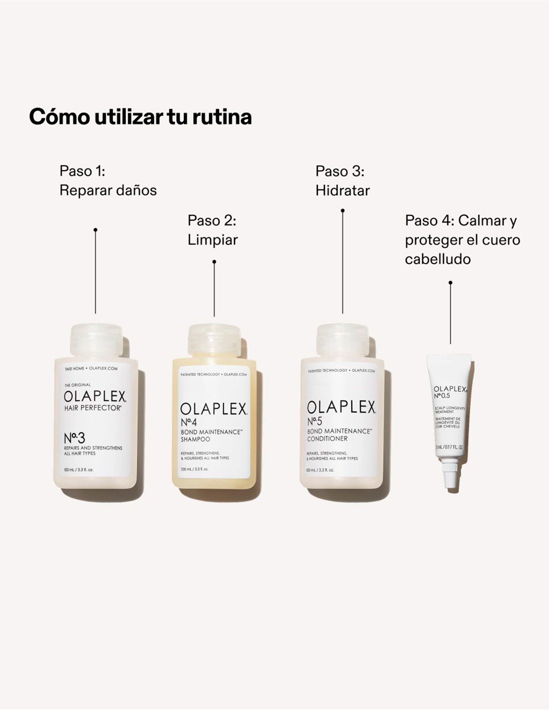 • Tecnología patentada OLAPLEX Bond Technology™: fortalece el cabello y repara el daño a nivel molecular al reconstruir los enlaces de disulfuro que le dan fuerza al cabello.