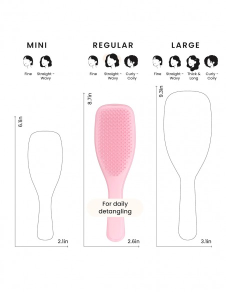 Ya tengas cabello seco, mojado, lacio, ondulado o rizado, este cepillo está especialmente diseñado para adaptarse a las necesidades de tu melena sin tironear ni estresar tu cuero cabelludo.