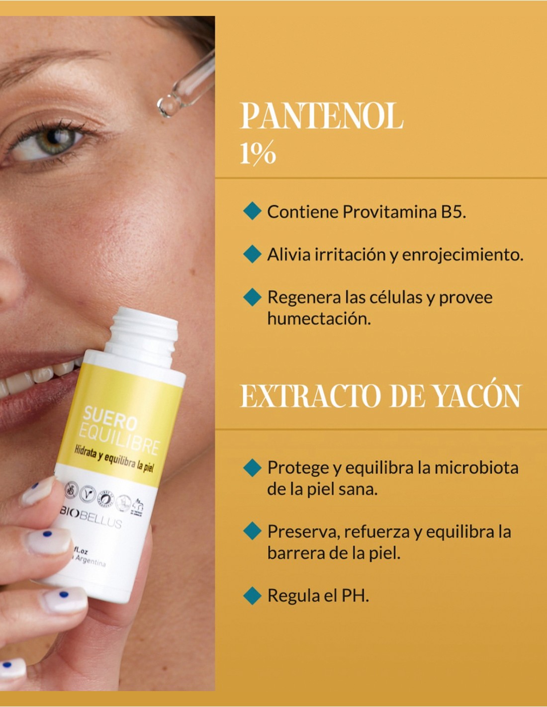 • EXTRACTO DE YACON: Protege y equilibra la microbiota de la piel sana. Preserva, refuerza y equilibra la barrera de la piel. Regula PH