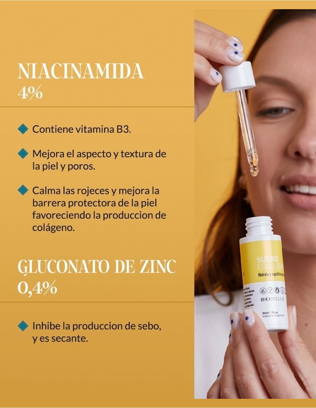 • NIACINAMIDA 4%: Vitamina B3. Favorece la reduccion del acne mejorando el aspecto y textura de la piel y poros. Calma las rojeces y mejora la barrera protectora de la piel favoreciendo la produccion de colageno