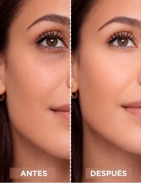 Corrector tapa ojeras y bolsas, corrige imperfecciones, ilumina la mirada y define el rostro.